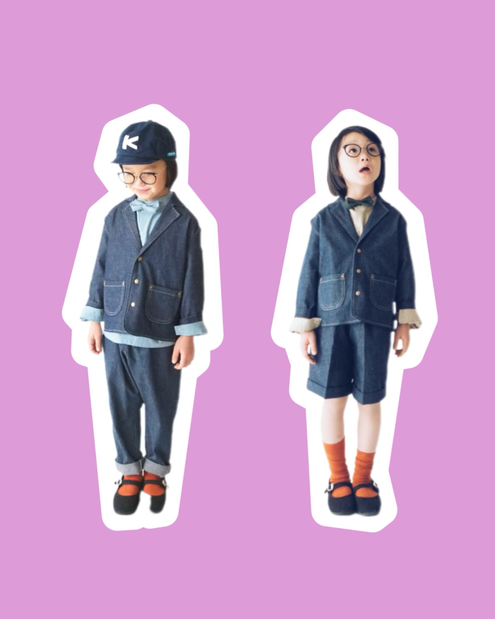 専用決済ページ ☑︎Indigoデニム ジャケット ¥8700 150〜160サイズ 裏地 ピンクストライプ ☑︎ノーカラーシャツ Lサイズ:着丈袖丈7cmほどプラス 青みピンク生地 :レッドプリント ¥4840