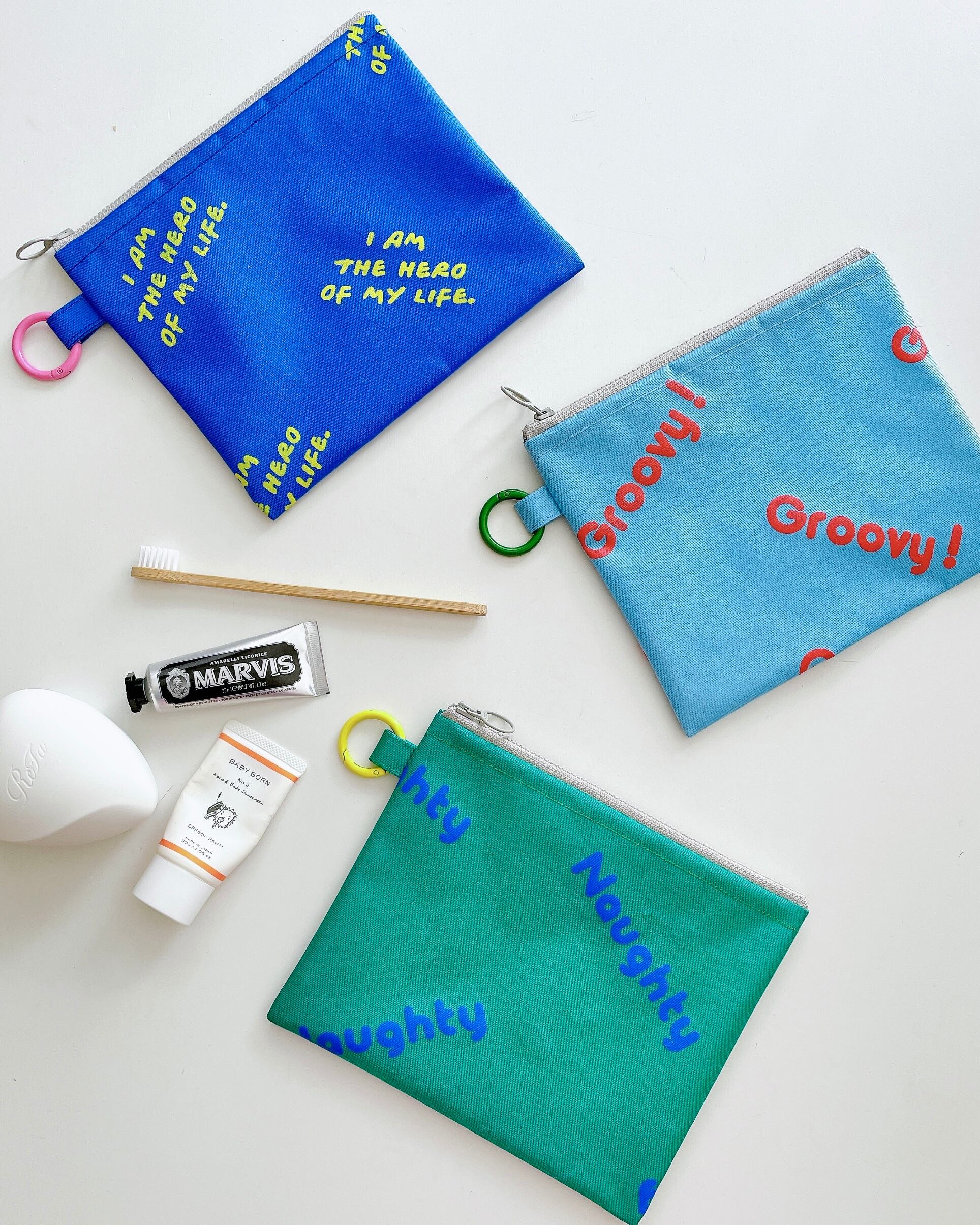 ご旅行時の歯ブラシセットやスキンケアアイテムを入れるのにもぴったりなミニポーチです。