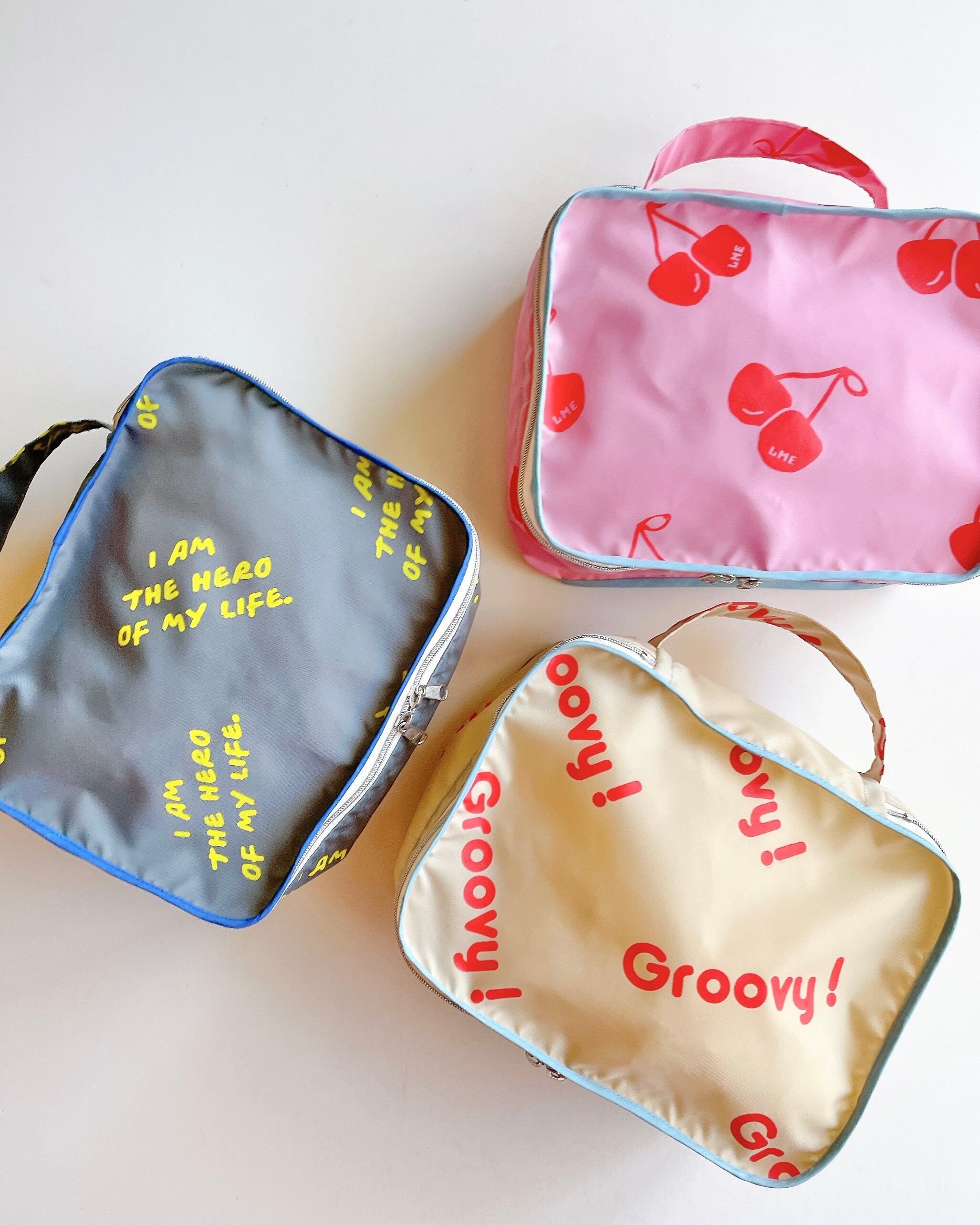 ※撥水加工生地ですが防水ではありません。多少の水気は弾きますが濡れたものをお入れの際はビニール袋なども併用していただくと安心です
