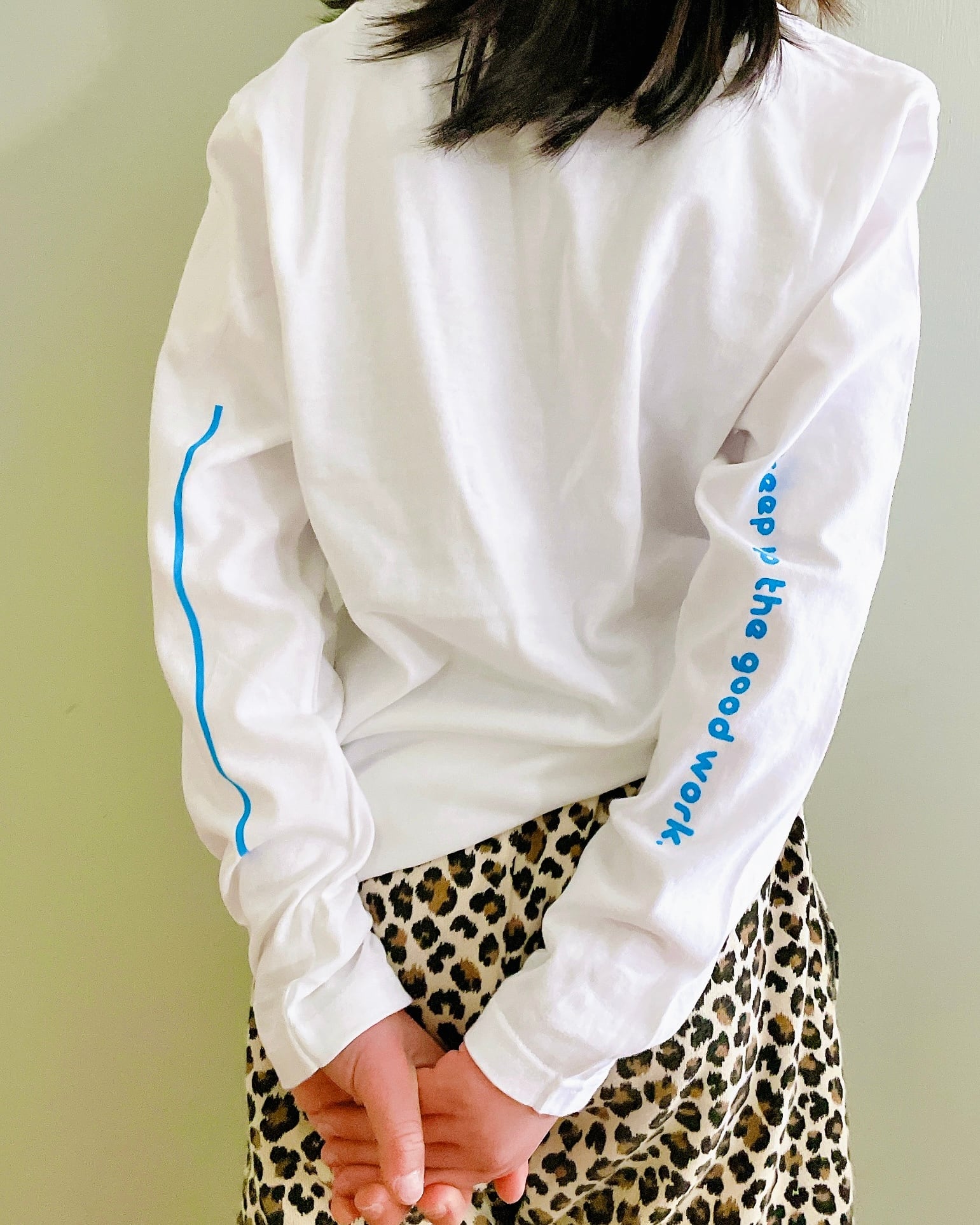 袖部分のプリントで後ろ姿もポイントに。