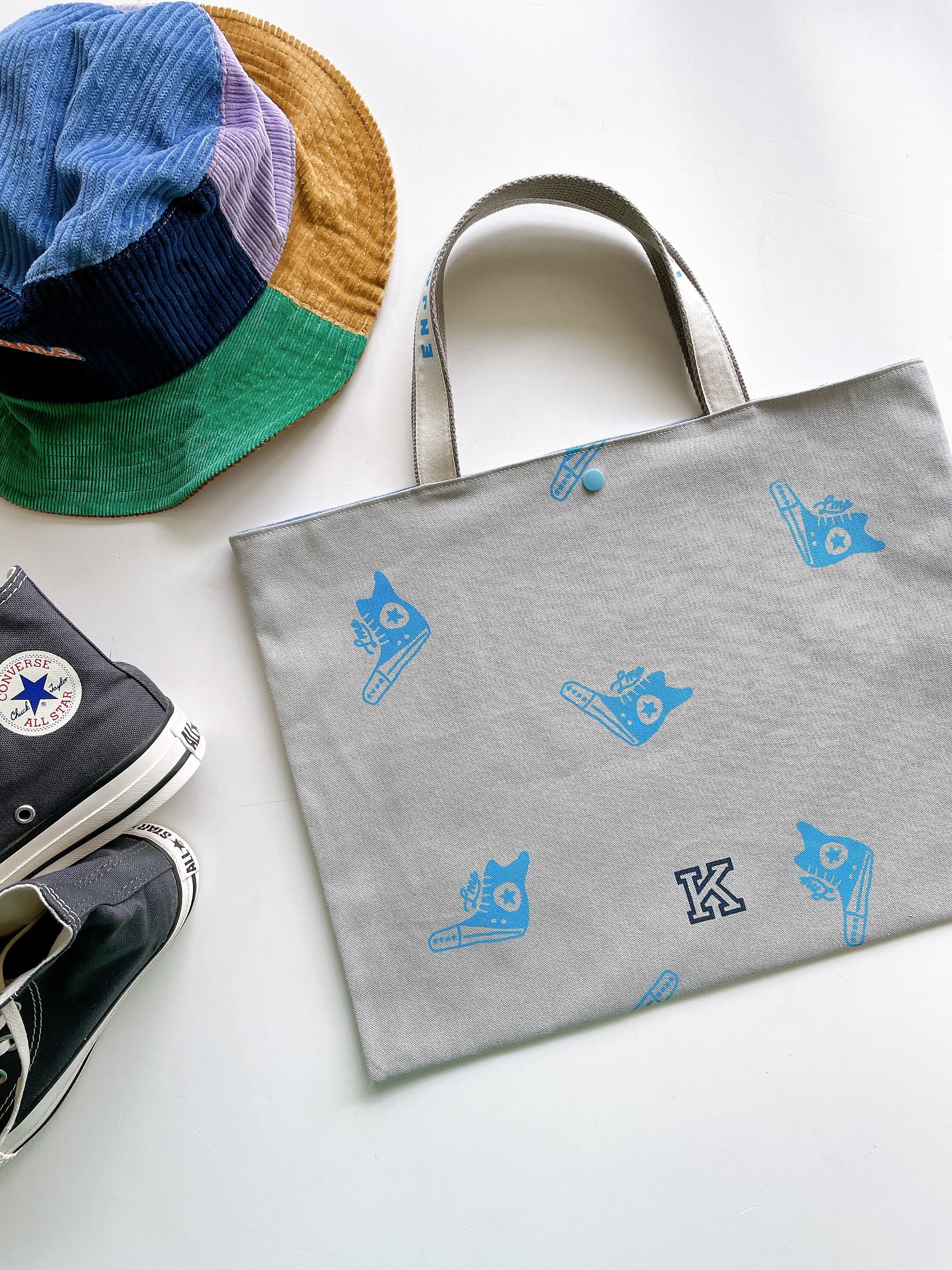 11号帆布を使ったしっかり丈夫な作りの総柄トート。