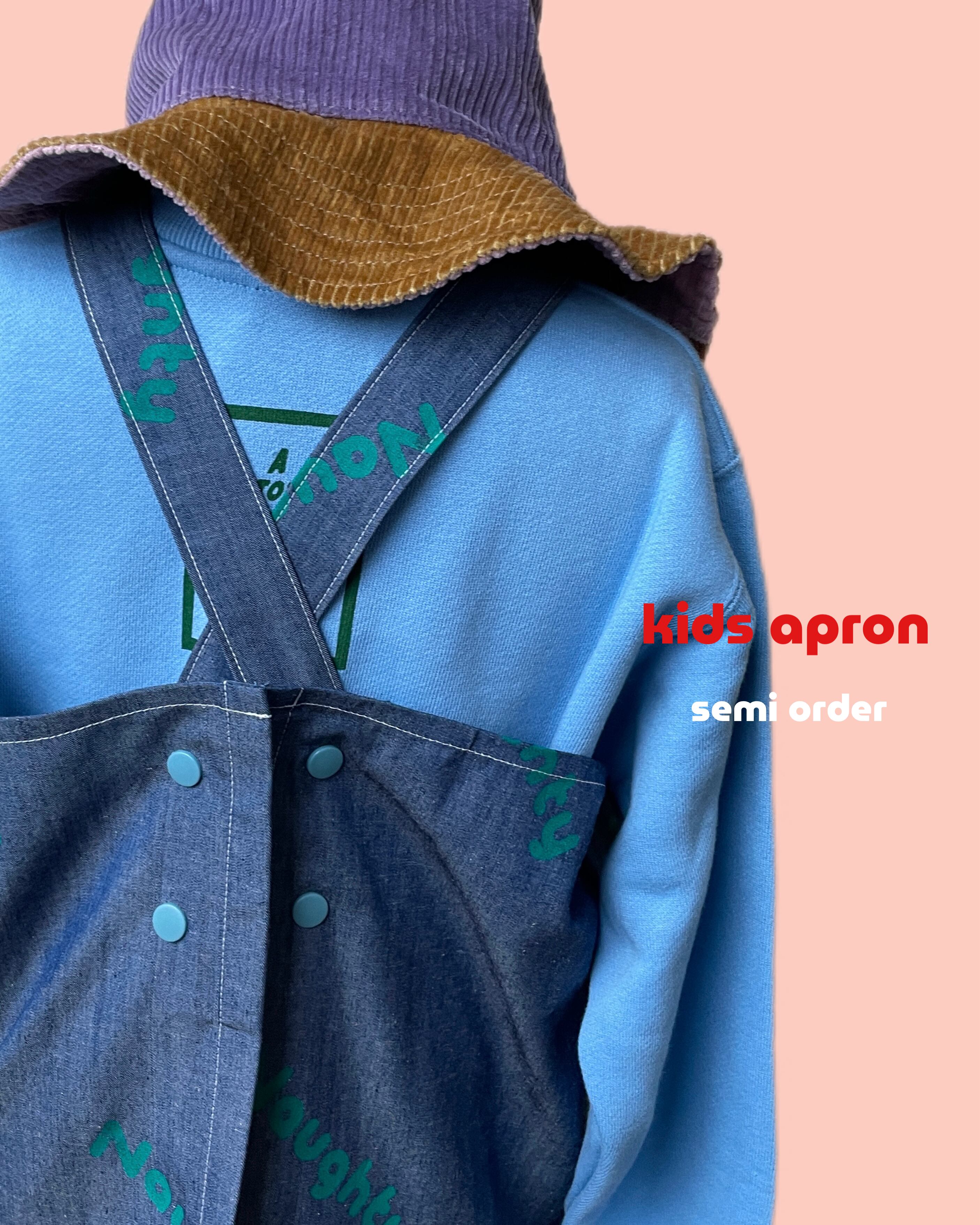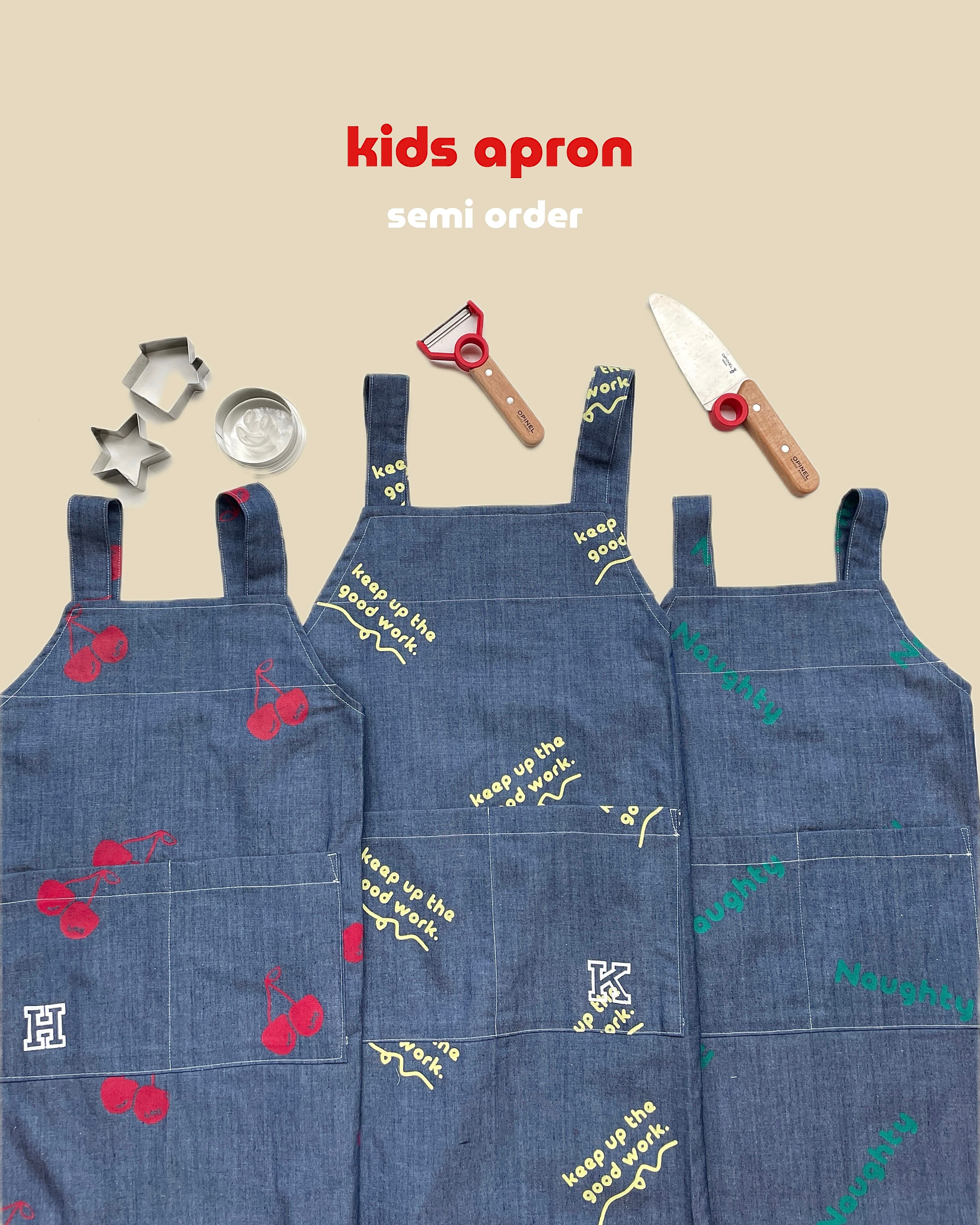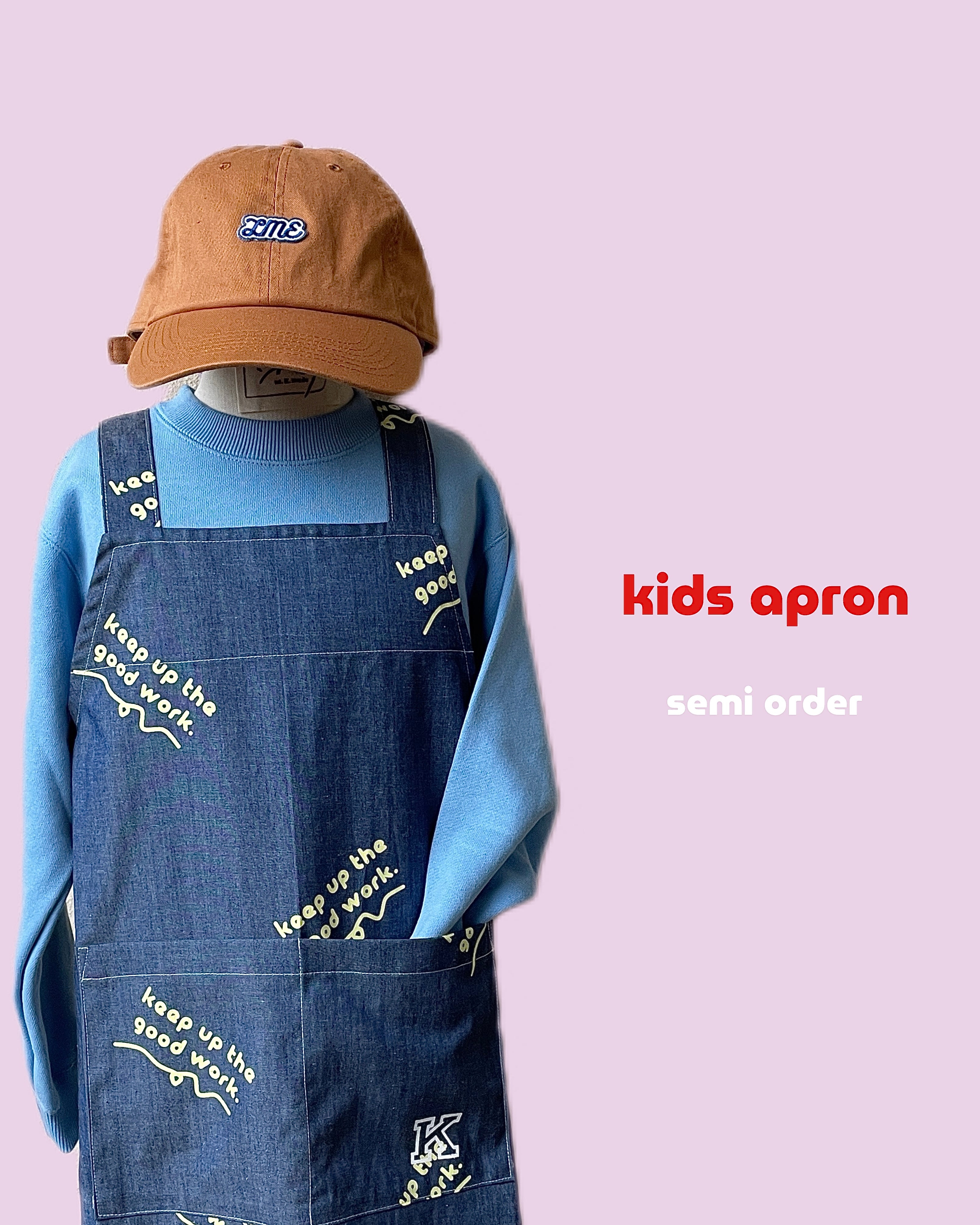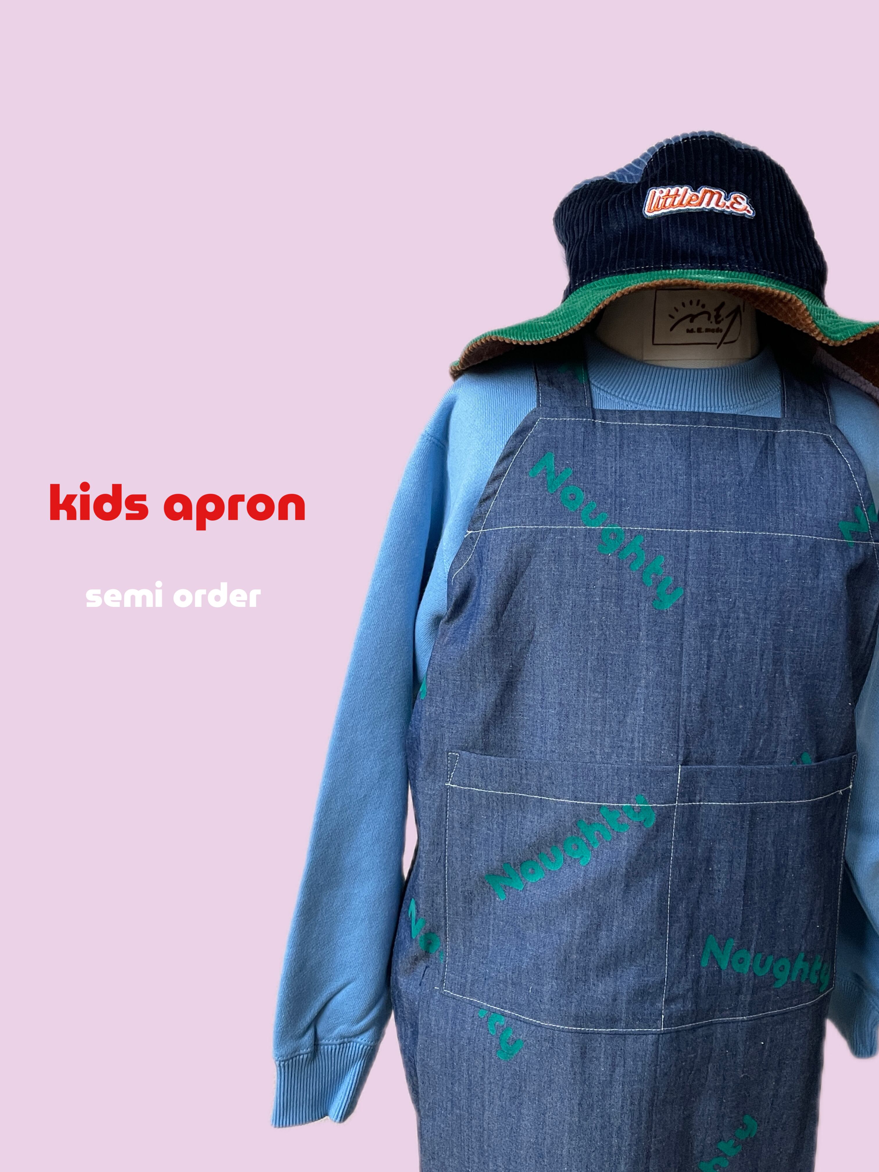 薄手のデニム生地にオリジナル総柄をプリントしたキッズ用エプロンです。